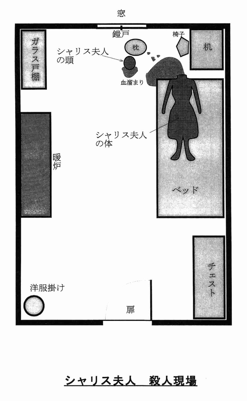 上午 11 点,众人汇聚在四楼东北侧的第二间客房,着手破解日记中记载的 Châlis 夫人断头惨案。房窗深嵌墙内,窗框上装有 4 根铁栅栏,间距仅 10 厘米。木制百叶窗紧闭并扣死,房门亦从内反锁。为解开这个诡谲的谜团,蘭子指导我用麻绳将羽绒被扎成假人,平放在床上,再以五斗柜为配重压住脚部,在窗外进行了实地演示。