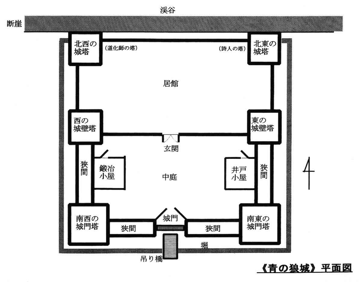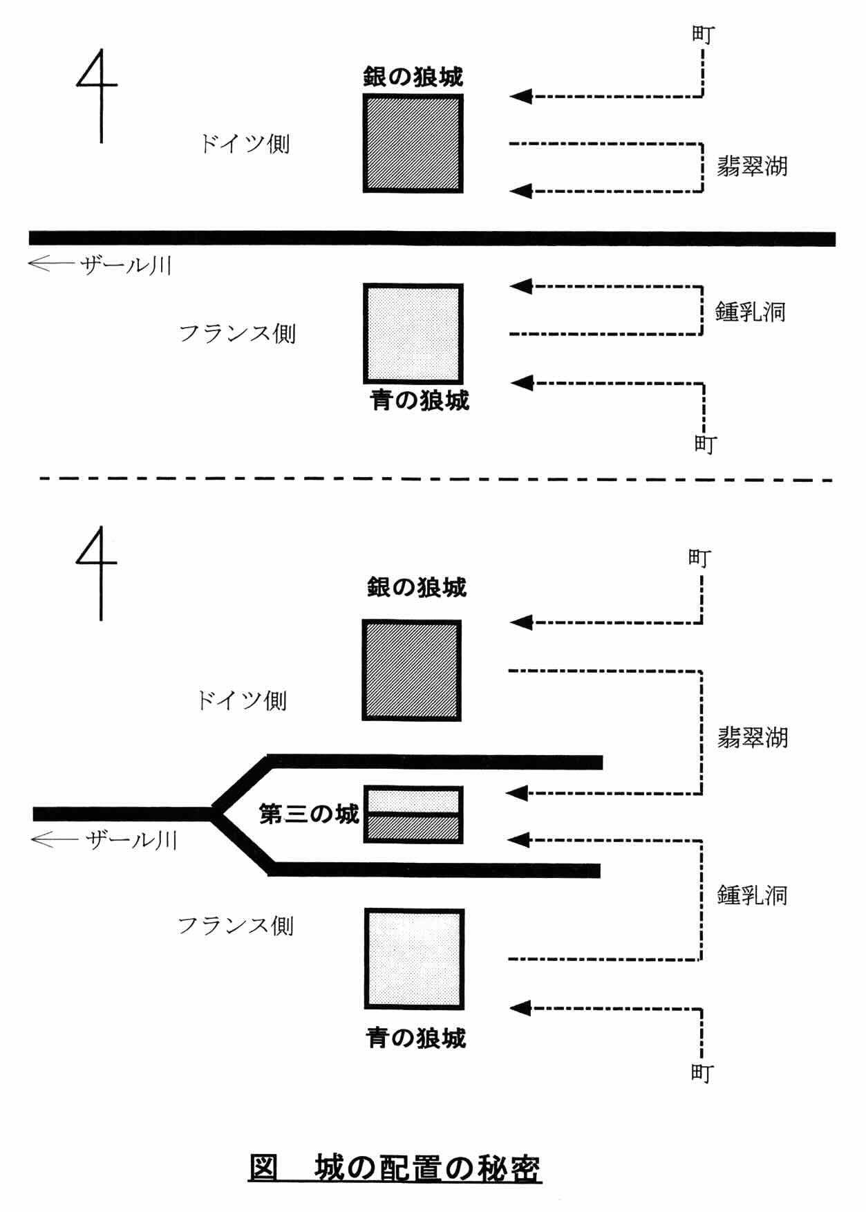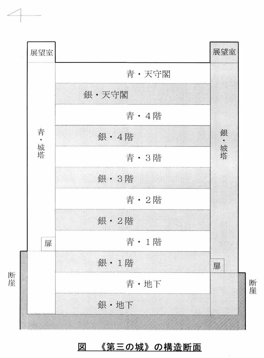 当晚,调查接近尾声,蘭子在“飨宴之间”向幕后黑手们发表了最终宣告。她全盘否定了我的“四子城理论”,断言世上仅有一对双子城堡。在摇曳的烛光下,蘭子揭开了这座宏大恶魔建筑的真面目。