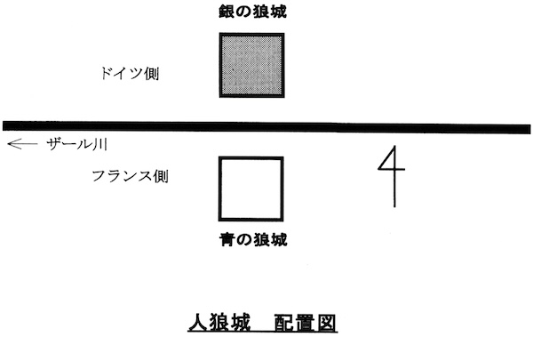 1971 年 4 月 20 日星期二下午 5 点,我(黎人)在“青狼城”三楼的卧室中苏醒。6 点左右,在蘭子的搀扶下,我来到二楼昏暗宽敞的“飨宴之间”。房内北侧设有一座大理石壁炉,两扇彩绘玻璃窗映入眼帘,西侧门边静立着一座巨大的座钟。此前,我在葡萄酒酿造厂遭遇黑衣人袭击,因吸入过量麻醉气体而昏迷。秘书 Holz 随后承认,绑架众人是为了让他们以“宾客”身份实地考察,以澄清关于人狼城的谣言,而蘭子当时屏住呼吸,假装昏睡。包括我、蘭子、Speer 老人、Ludendorff 警部、两名协助调查的 Strasbourg 警察,6 人一同被塞进车内,带至此处。Speer 老人向我透露,他已初步考察过城堡一至三层,内部布局、装饰细节,乃至塔楼展望室眺望对岸“银狼城”的景致,都与 Roland Gerken 律师日记中的记载分毫不差,但现场没有任何杀人痕迹。不久,自称是城堡主人 von Ribbentrop 伯爵首席秘书的 Albert Holz 带着两名黑衣人现身。他在晚宴上敷衍致歉,重申请众人来此是为了辟谣。他将矛头指向“Montsegur 叙事诗教团”,指控教主易容潜入城内,散布惨剧谣言,声称遇害者实为秘密入教,而幸存者则是拒绝入教后被洗脑,植入了虚假的惨剧记忆。为了自证清白,Holz 主动提供鲁米诺试剂等鉴识工具供众人调查。我当面提出“四子城理论”,推测深山中存在两组 4 座完全相同的双子城。我坚信日记记载属实,既然眼前的“青狼城”布局一致,却毫无血迹,唯一的解释便是存在另一座复制品作为行凶现场。同理,“银狼城”也应有对应的复制品。这一推论遭到了对方的极力嘲笑与否认。蘭子建议通过确认当前城堡是否存在行凶痕迹来验证,而非在调查初期就断言物理结构。她坚持在完成对“青狼城”的调查后,必须前往对岸的“银狼城”核实,以寻找两地惨剧同步发生的真相。Holz 请示后,勉强同意。