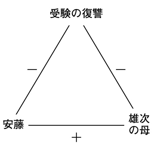 周六下午,两人来到位于吉祥寺税务署附近的芦屋宅邸,见到了芦屋的青梅竹马安藤絵美、拄着拐杖的芦屋母亲秋子。安藤透露,案发当晚她和秋子都在家中等待芦屋归来,两人互为不在场证明。她还讲述了初三那年冬天,秋子驱车接补习班下课的两人,为避让违规自行车与另一辆车相撞,导致安藤右臂骨折,错失推荐入试,秋子下半身麻痹。唯花通过测谎排除了安藤蓄意报复的嫌疑。秋子坦言,亡夫作为私生子,对家庭有极深的创伤性执念,而她曾经历过两次惨痛的继承纠纷,为了避免儿子重蹈覆辙,她主动将财产过户给儿子,交由律师管理,如今儿子一死,她成了唯一继承人。唯花再次测谎,确认秋子对财产毫无兴趣,排除了她的嫌疑。秋子散步时曾被误当成痴呆老人盘问。警方在芦屋遗留的包里发现了一本名为《天真无邪的天空的故事》的成人向推理小说,这与他平时的习惯大相径庭。返回大学的路上,唯花运用社会心理学中的“ABX 认知均衡模型”解释:该模型将人物与目标构成三角形,通过正负情感相乘,若结果为正即达到“认知均衡”,则没有改变现状的动机。以秋子为例,三角形顶点是母亲、儿子、财产,母亲爱儿子(正),但两人均对财产无兴趣(负),负负得正,结果为正;安藤的三角形则是安藤、母亲、复仇,安藤爱母亲(正),且两人都不想复仇(负),相乘同样为正。唯花通过测谎确认了两人对财产和复仇的真实情感,得出她们处于认知均衡状态,缺乏杀人动机,从而在科学逻辑层面上排除了两人的嫌疑。