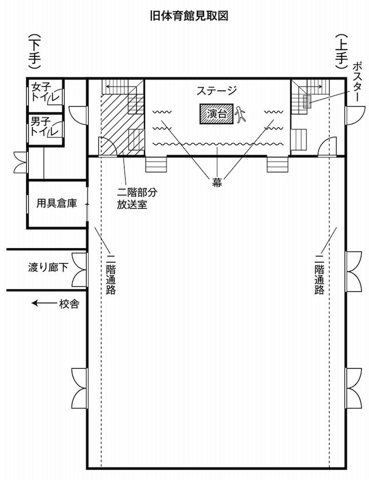 案发当日,大雨倾盆。下午 3:07,女子乒乓球部一年级生袴田柚乃与好友野南早苗冒雨前往旧体育馆。途经走廊时,柚乃瞥见二年级女生針宮理恵子正打着伞,满脸不悦地站在洗手间窗前。两人进入馆内,顾问増村老师与部长佐川奈緒已在准备。柚乃发现舞台那厚重的红色帷幕竟罕见地降了下来。3:15 左右,馆内回荡起两声沉闷的巨响,如同敲击太鼓。紧接着,演剧部部长梶原和也赶来排练,指示部员升起帷幕。眼前的一幕令人惊恐:身穿深蓝色背心的朝島友樹瘫坐在演讲台旁,胸口插着一把银色细长小刀,已然断气。