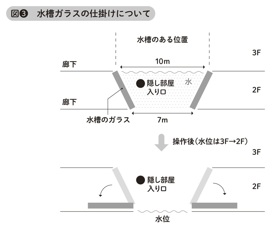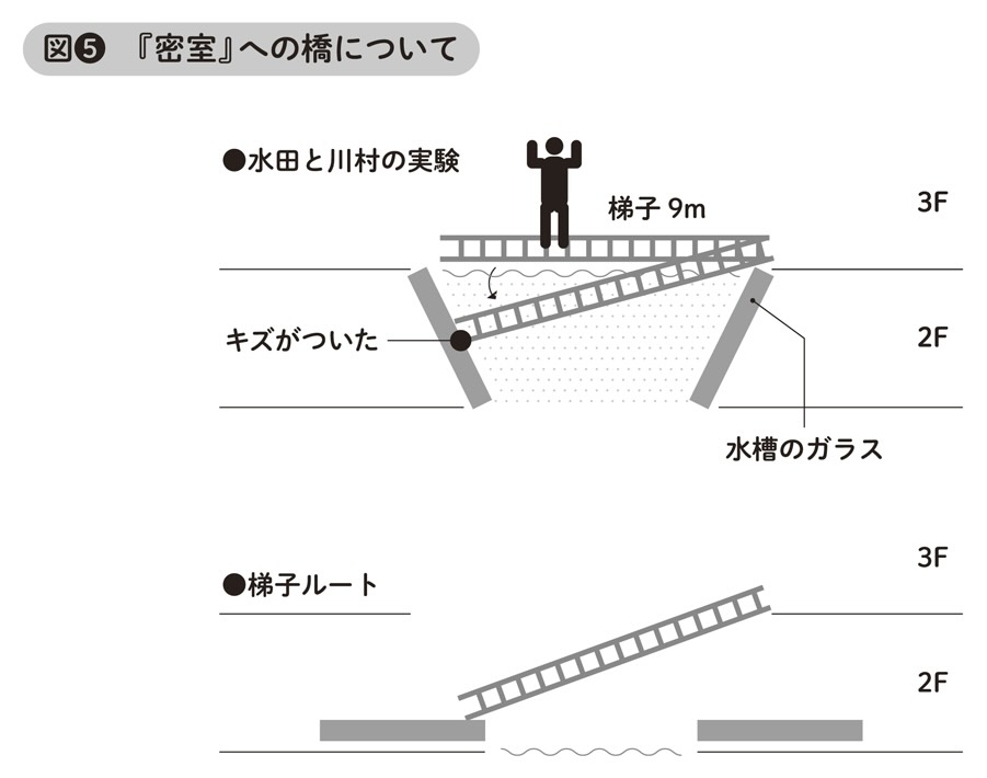 【石動戯作】城堡内,水城打电话指出,石動被骑士妄想与逼真的布景蒙蔽了双眼。现实中的这里并非中世纪堡垒,而是受现代消防法规约束的游乐设施,建筑深处的封闭房间必然设有紧急逃生门。如梦初醒的石動冲进寝室,在拼布被褥后果然发现了一扇亮着绿灯的钢制逃生门,这正是击碎密室假象的铁证。石動刚回到卖场,便被守候多时的紅林与鷹月截住。