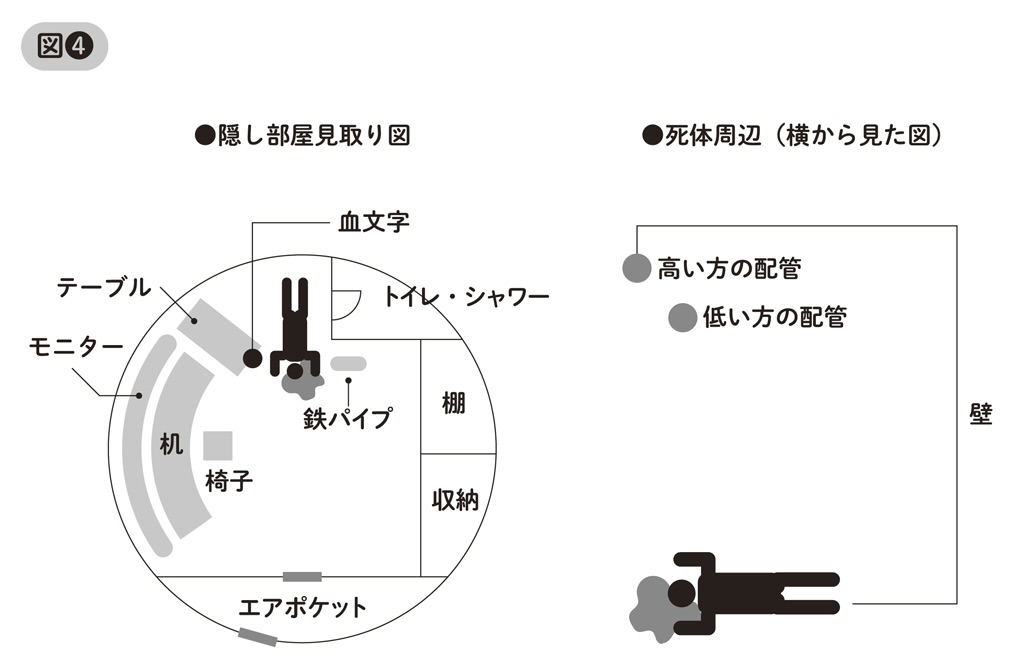 【紅林公人】千叶县警搜查一课的紅林公人与古根赶赴现场。警方梳理时间线:情景重演结束后,专务若林率先离场,导游ルミ与大海四郎紧随其后,秘书飯留独自前往寝室,大海与江里社长在厅内交谈 2 分钟后分开。之后,社长独自走进寝室,发现尸体,惊恐地逃入森林。警方在床铺旁找到了沾满血迹的马形摆件,即为凶器。由于飯留死于无窗密室,且案发前后仅有社长一人进入过寝室,警方将嫌疑锁定在江里陆夫身上。